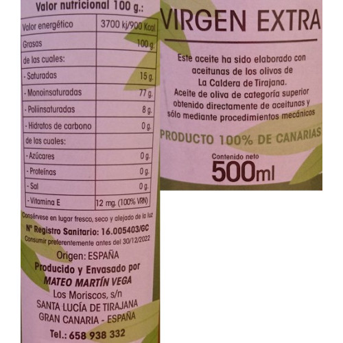 Finca Los Barros - Aceite de Oliva Olivenöl aus Agüimes 500ml hergestellt auf Gran Canaria