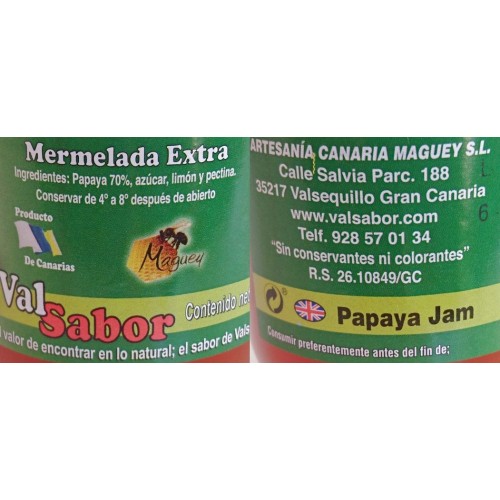 Valsabor - Mermelada de Papaya Papayamarmelade Glas 250g hergestellt auf Gran Canaria
