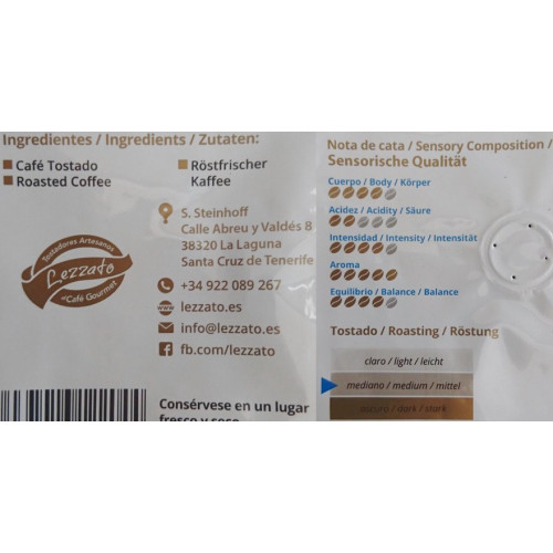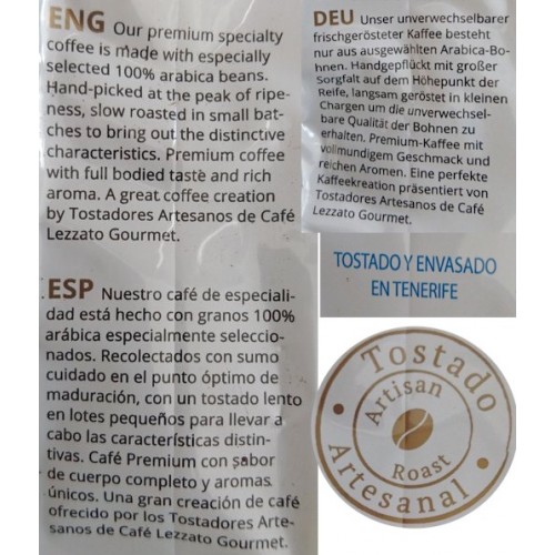 Schnellsuche Lezzato - Café de Especialidad Supremo molido Kaffee geröstet gemahlen 250g hergestellt auf Teneriffa