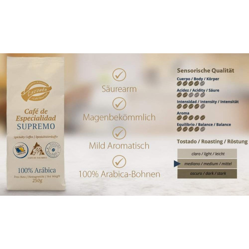 Lezzato - Cafe de Especialidad Supremo Bohnenkaffee geröstet 250g hergestellt auf Teneriffa